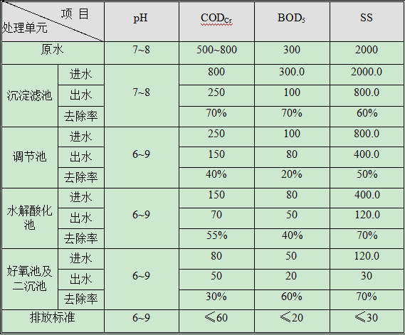 主要污染物去除效果一覽表    (單位:mg/L,pH除外)
