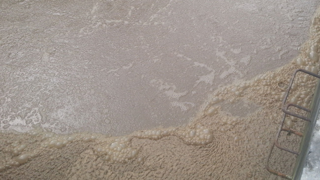 ①原水中含有大量的表面活性劑成分(生產(chǎn)過程中添加的物質(zhì)所至,洗滌劑、清潔劑等產(chǎn)品所導(dǎo)致,泡沫為白色,氣泡細(xì)小,輕且不帶粘性) ②微生物繁殖中產(chǎn)生大量脂類物質(zhì)或微生物(微生物自身生長(zhǎng)繁殖活動(dòng)所至,泡沫為泥色,氣泡大,帶粘性)