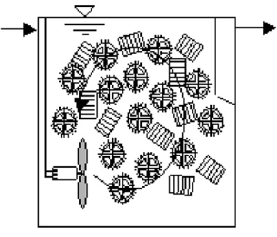 在厭氧條件下,水流和懸浮載體在潛水攪拌器的作用下充分流動起來,達到生物膜和被處理的污染物充分接觸實現生物分解的目的。