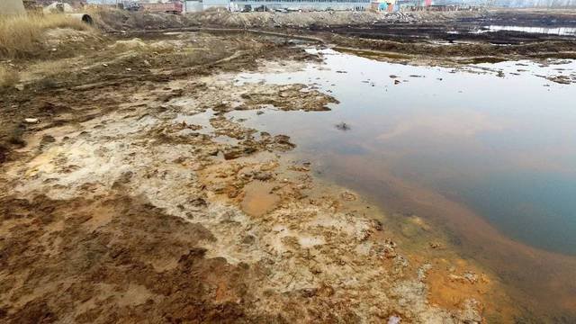 此外,在這處滲坑周邊,還有七八處水面呈現(xiàn)黑色、土黃色等異色的滲坑。其中黑色滲坑邊上堆著黑色、紅色污泥。“我們也很想知道這些廢水從哪里來,在這里放了多久,但是在現(xiàn)場(chǎng)沒有打聽到。”向春說,現(xiàn)場(chǎng)沒有發(fā)現(xiàn)排污管,應(yīng)該是用罐車運(yùn)輸?shù)竭@里傾倒的。